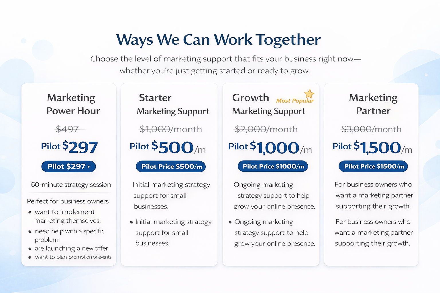 In this 30-minute consultation, we'll review your current social media and online presence and identify simple opportunities to improve your visibility.