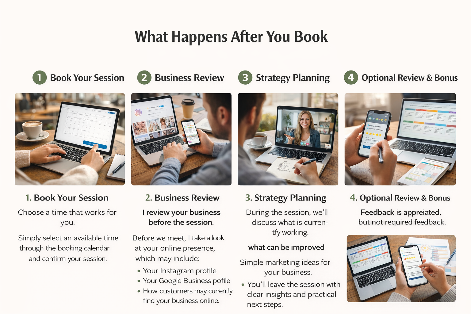 I help small businesses turn Instagram, Google, and simple online tools into a system that brings consistent local bookings.